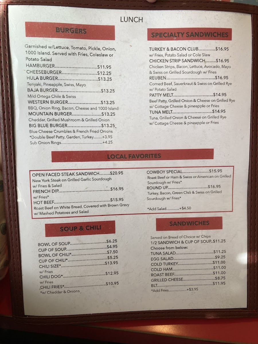 Begin your meal with tantalizing appetizers like Deep Fried Mushrooms or Zucchini, perfect for sharing. The burger selection is impressive, with options such as the cheeseburger ($12.25) and the unique Hula Burger. For sandwich lovers, the Tuna Salad and BLT are crowd favorites, each showcasing generous portions and fresh ingredients.
