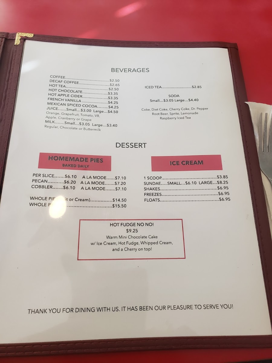 Cheryl's Diner Menu
